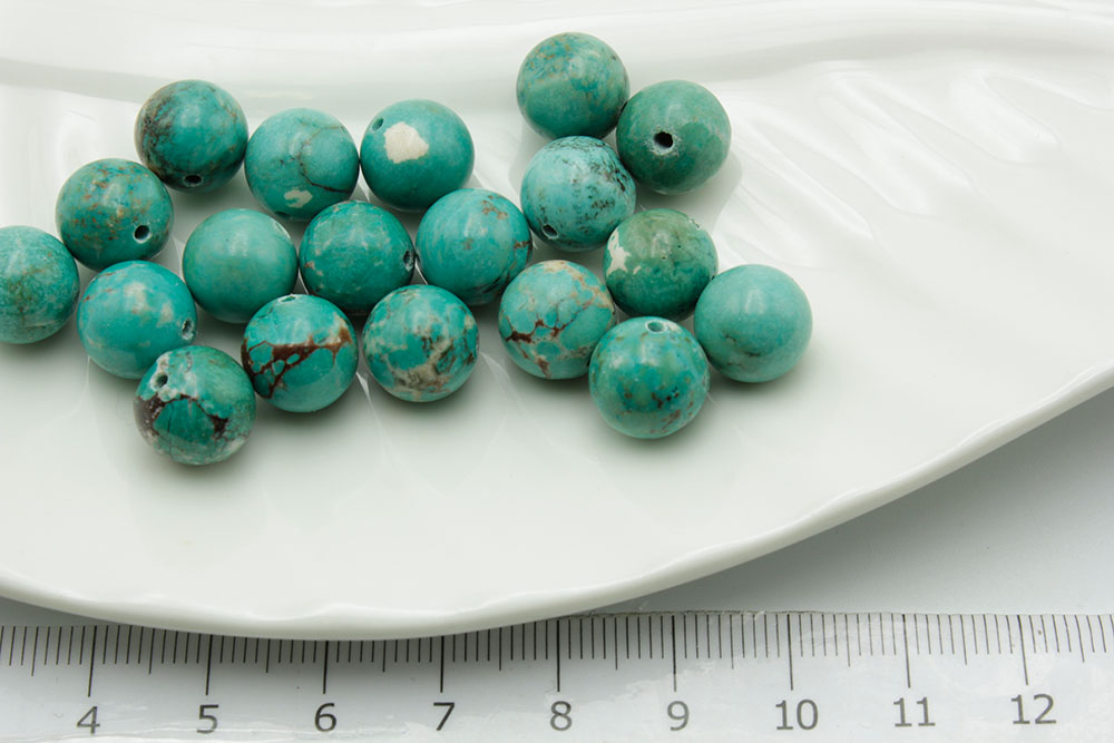 Бирюза натуральная зеленая круглая 10мм 1шт/коробка