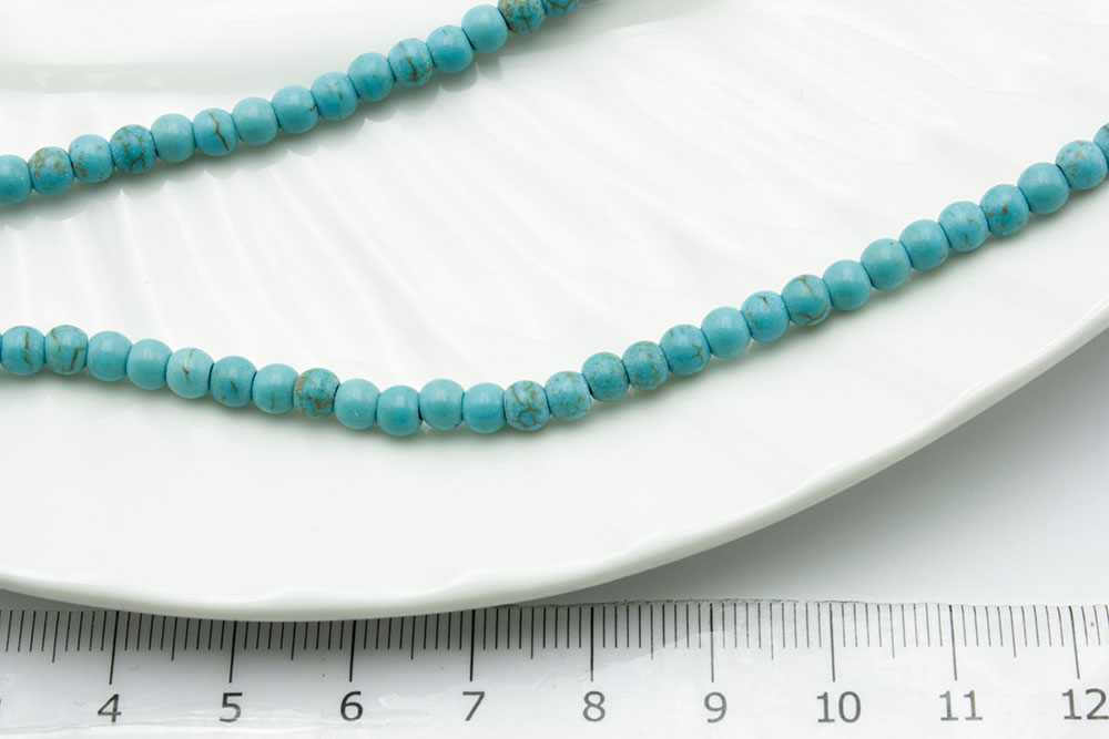 Бирюза (имитация) синяя круглая 4мм ~40см/нить