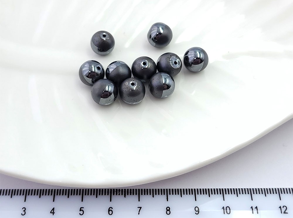 Гематит никель глянцевый+матовый круглый 10мм 20см/нить