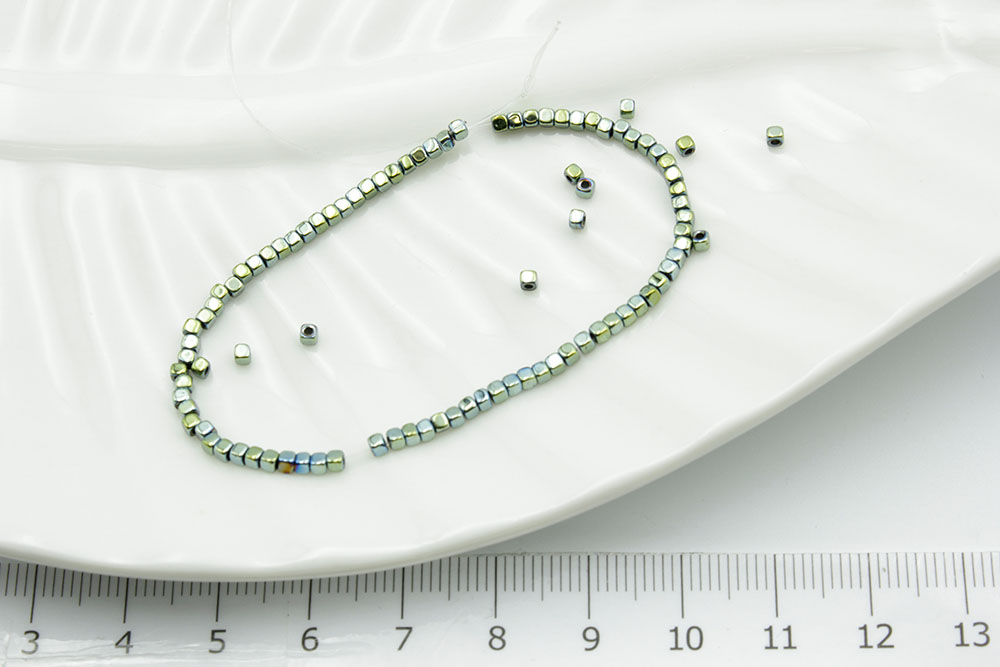Гематит зеленый, кубик скругленный 2мм, 20см/уп - Рукоделкино Товары для творчества Фурнитура для украшений