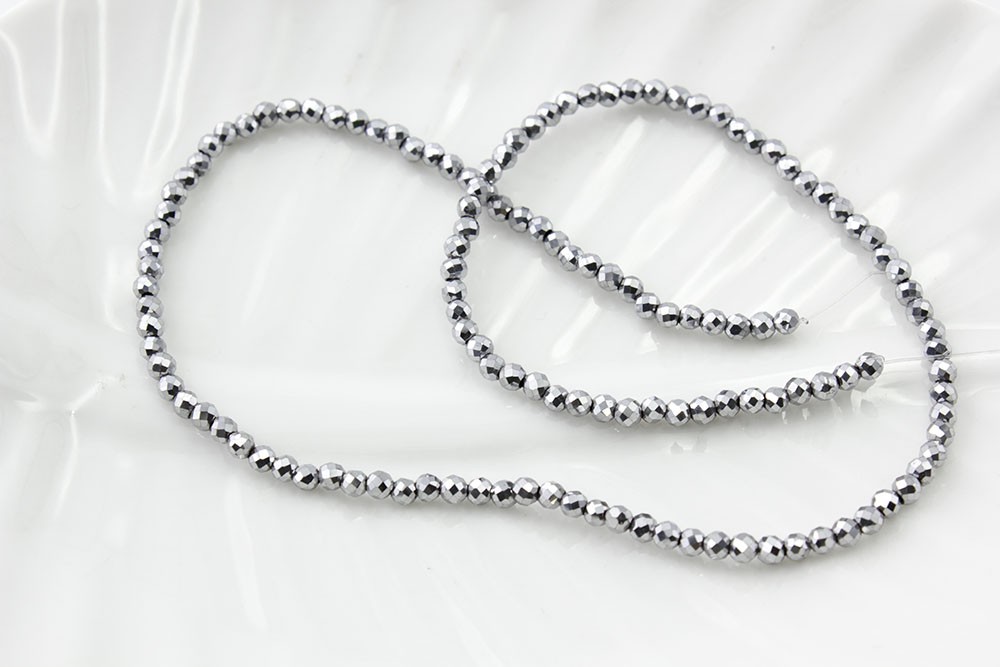 Гематит бусины. Цвет: серебро. Форма: круглая гранёная. Размер: 3 мм. Цена указана за нить. Длина нити - 38 см.