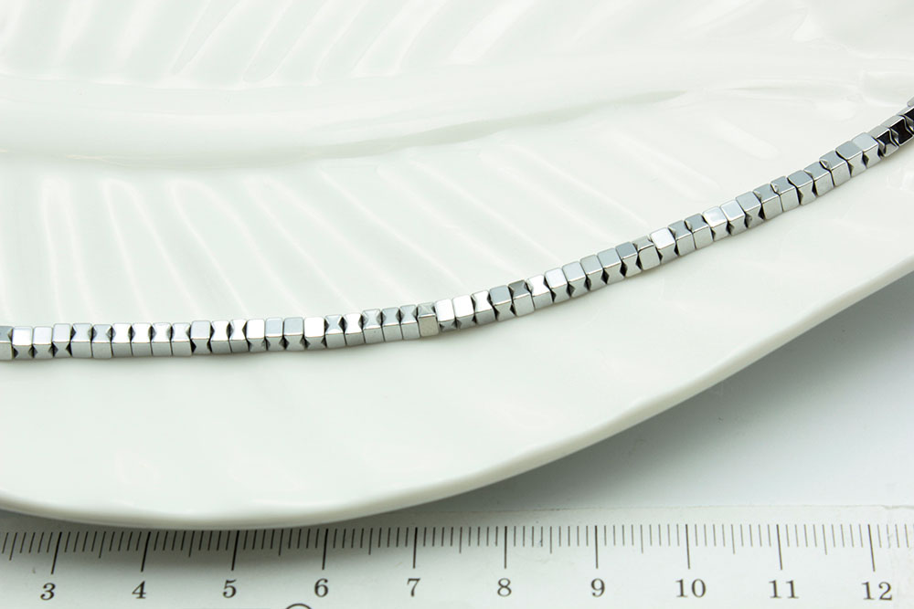 Гематит серебро, куб с выпукл грань, 3мм, ~20см/нить