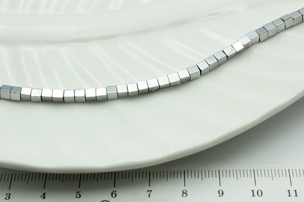 Гематит серебро, кубик, 3мм, ~20см/нить