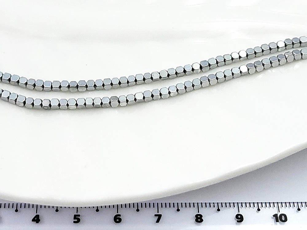 Гематит серебро, кубик граненый 2*2 мм, 40 см/нить