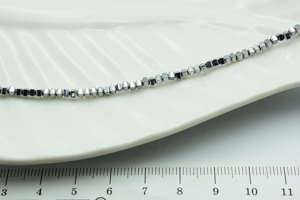 Гематит серебро, кубик гран. 2*2мм, 20см/нить