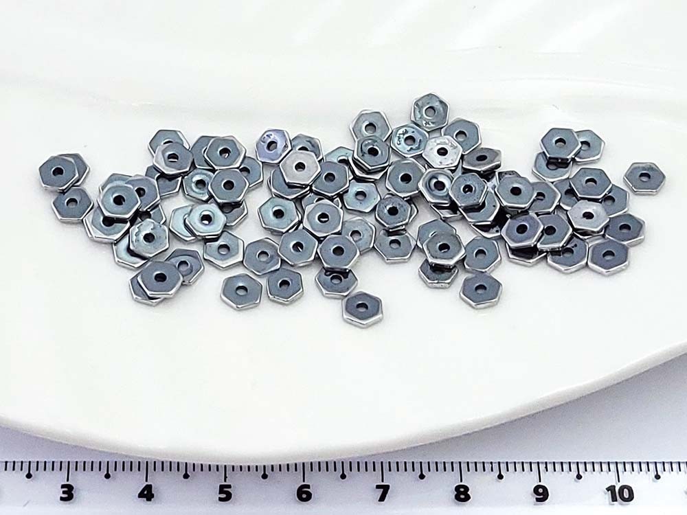 Гематит серебро, рондель шестигранный 6*1 мм, 10 см/уп