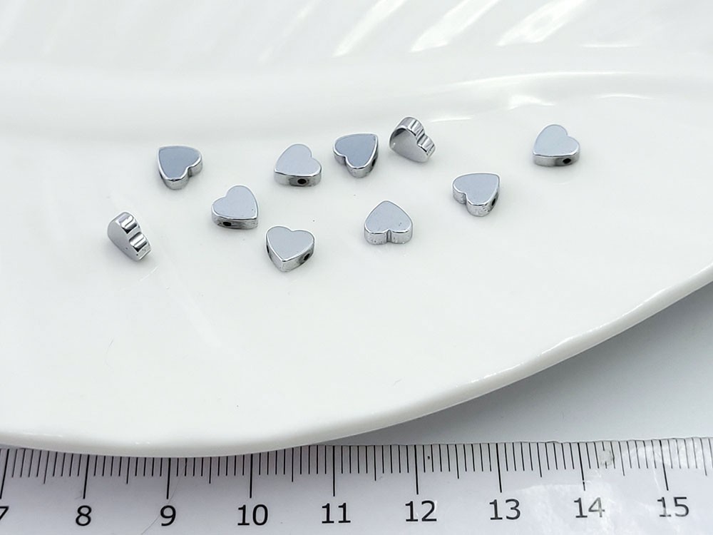 Гематит серебро, сердце (отверстие сбоку) 7*7*2мм, 10шт/уп