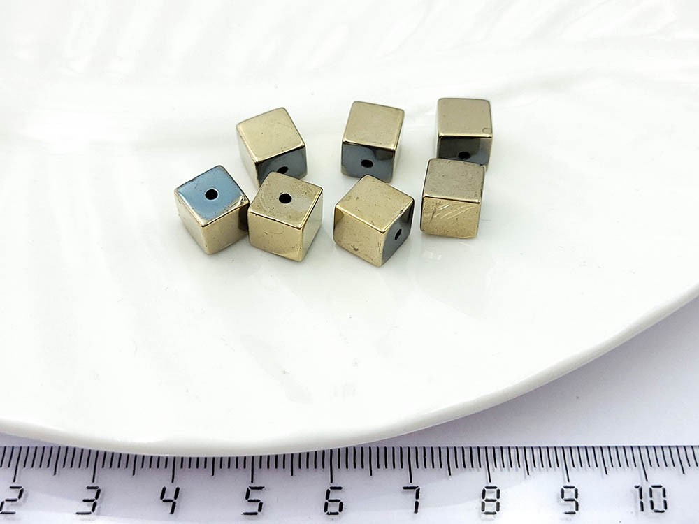 Гематит золото, кубик 8 мм, 7 шт/уп