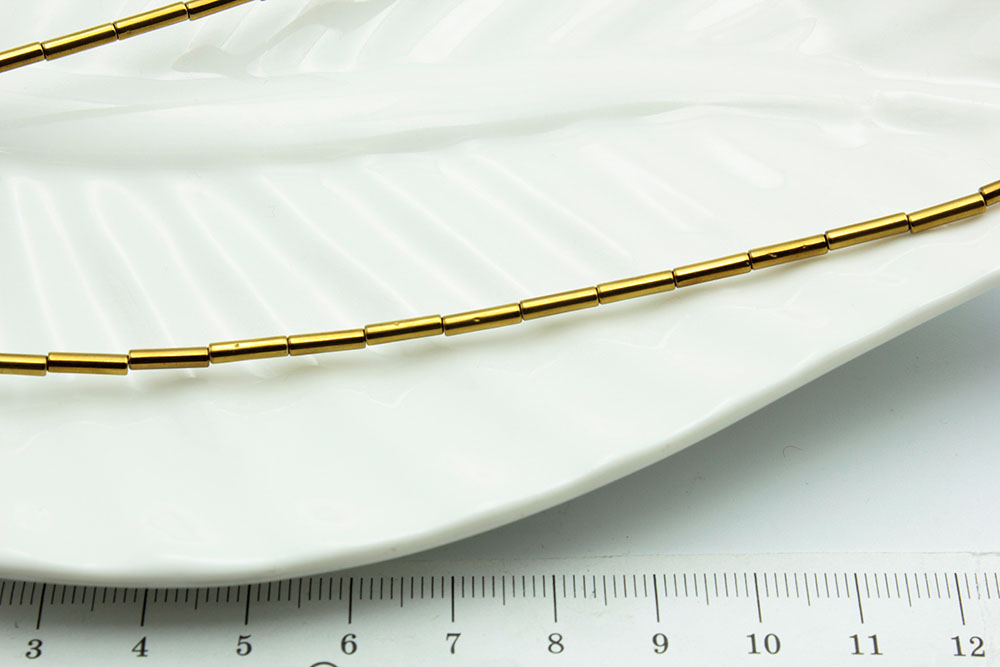 Гематит золото, цилиндр, 8*2мм, ~40см/нить
