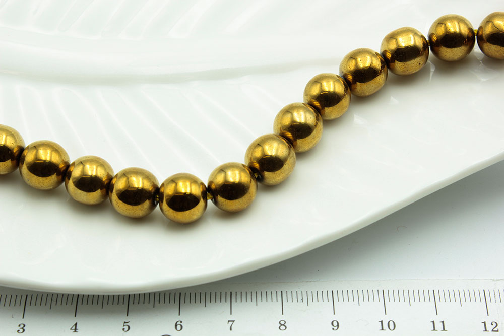 Гематит золото, круглый, 10мм, 16шт/нить - Рукоделкино Товары для творчества Фурнитура для украшений