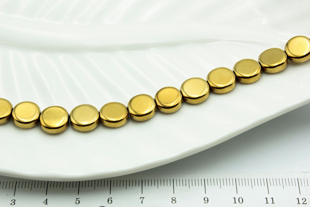 Гематит золото, таблетка плоская круглая 9*4мм, ~22шт/нить