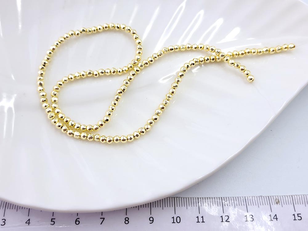 Гематит светлое золото, круглый граненый 3мм, 40,5см/уп