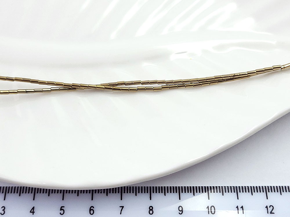Гематит золото, цилиндр, 3*1мм, 40см/нить