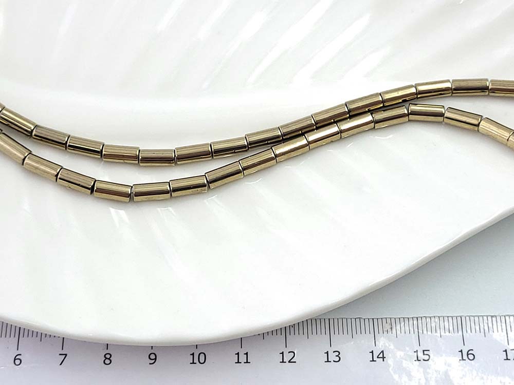 Гематит золото, цилиндр, 8*3мм, ~40см/нить