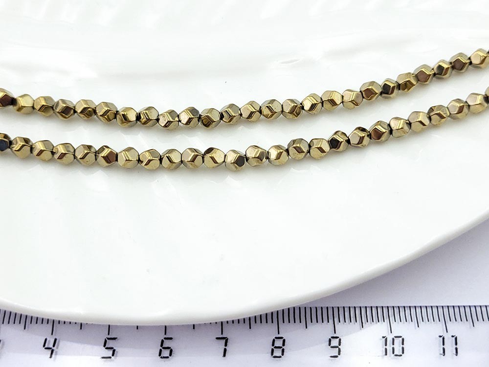 Гематит золото, круглая граненая 4 мм, ~20 см/нить