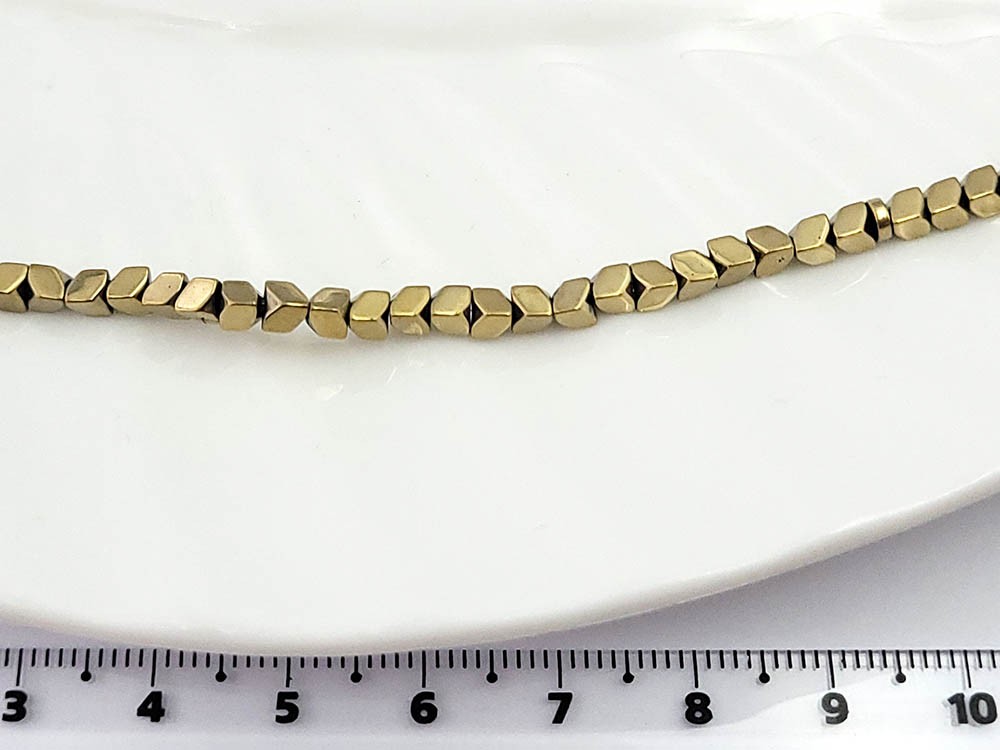 Гематит золото, куб диагональная грань 3*3 мм, 20 см/нить
