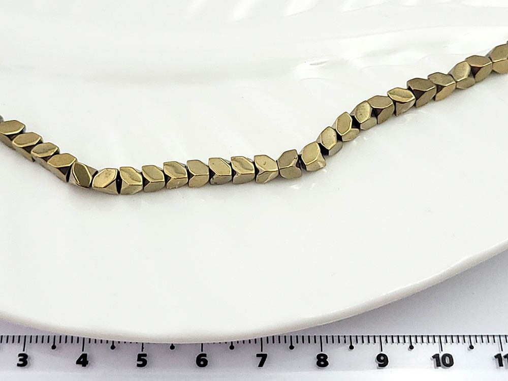 Гематит золото, куб диаг грань 4*4 мм, 20 см/нить
