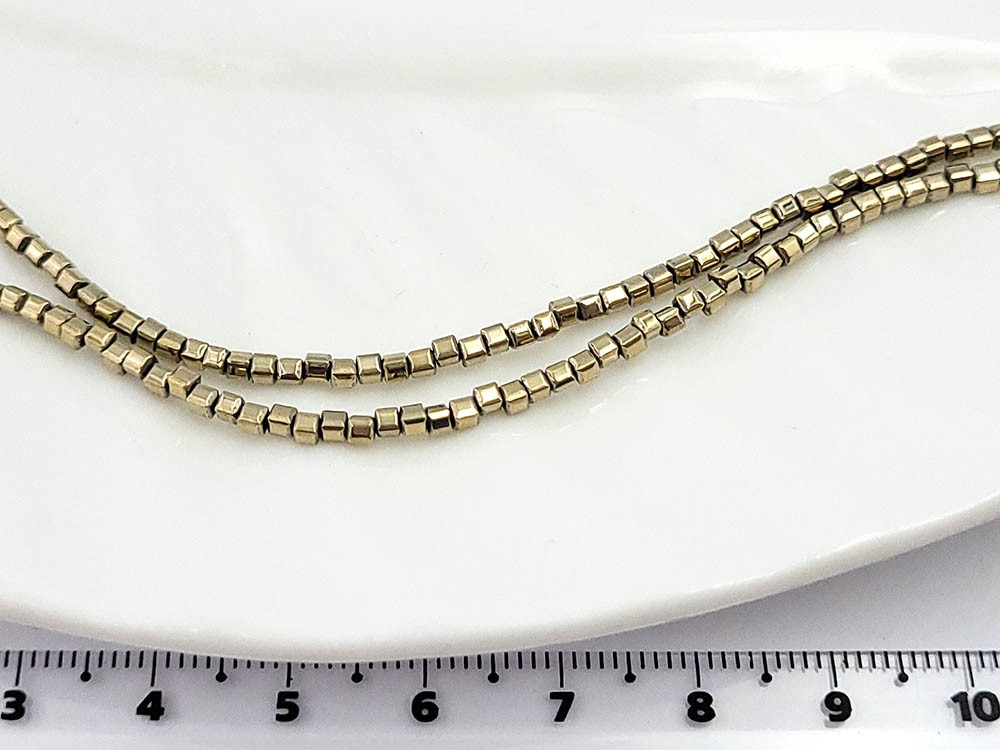 Гематит золото, куб с выпуклой гранью 2 мм, 40 см/нить