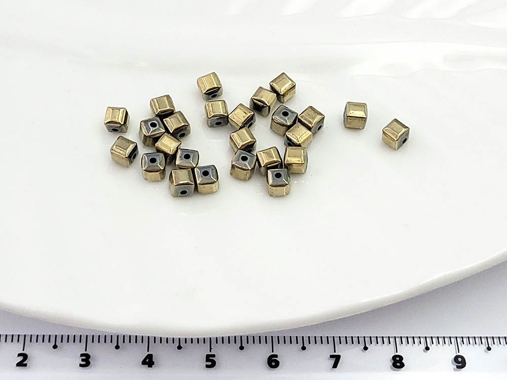 Гематит золото, кубик с выпуклой гранью 4 мм, 10 см/уп