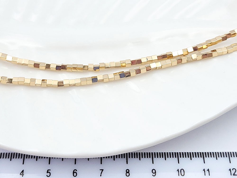 Гематит золото, кубик, 2 мм, ~40 см/нить2