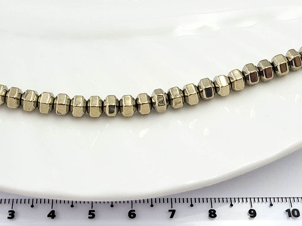 Гематит золото, рондель шестигранник выпуклый 6*4 мм, 20 см/нить