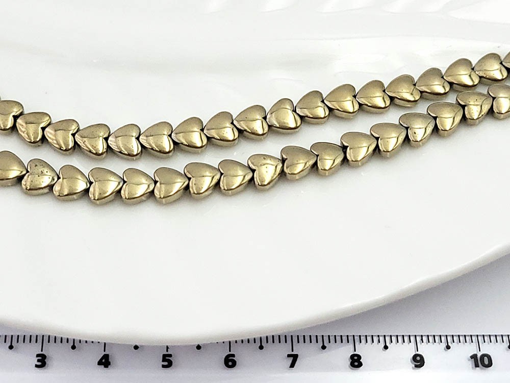 Гематит золото, сердце выпуклое 6*6 мм, 40 см/нить