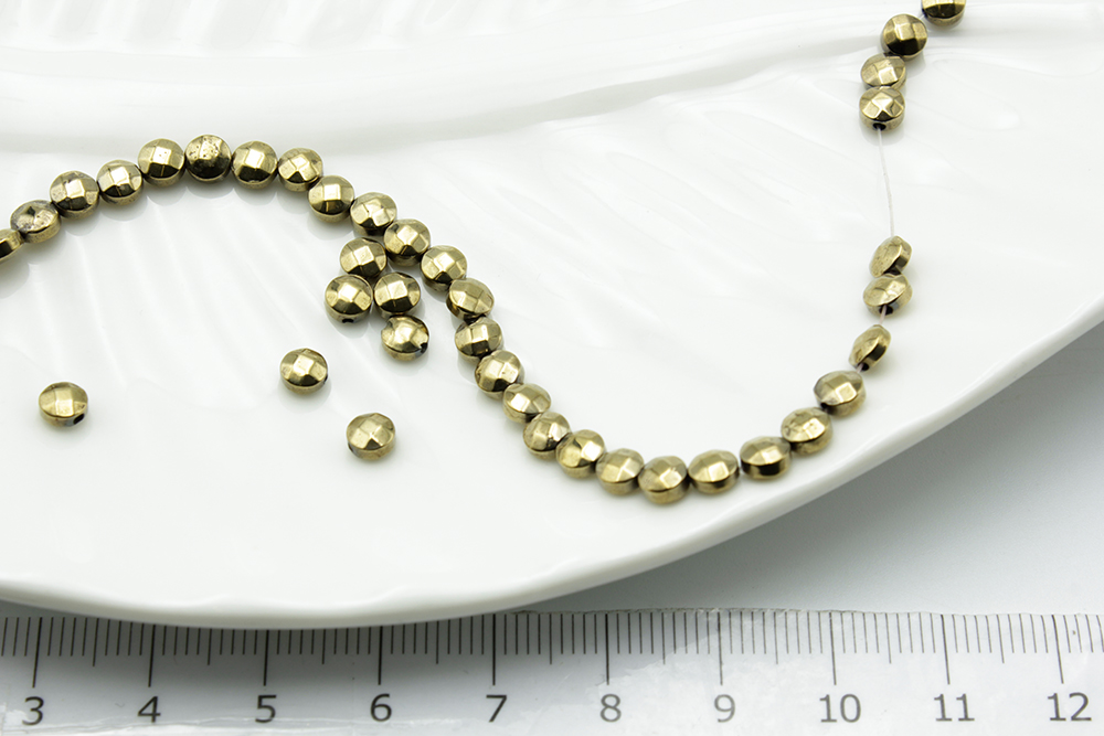 Гематит золото, таблетка круглая гран. 4*2мм, 20см/уп