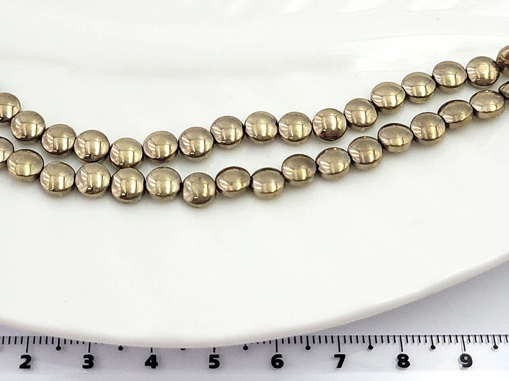 Гематит золото, таблетка круглая выпуклая 6*2 мм, 40 см/нить