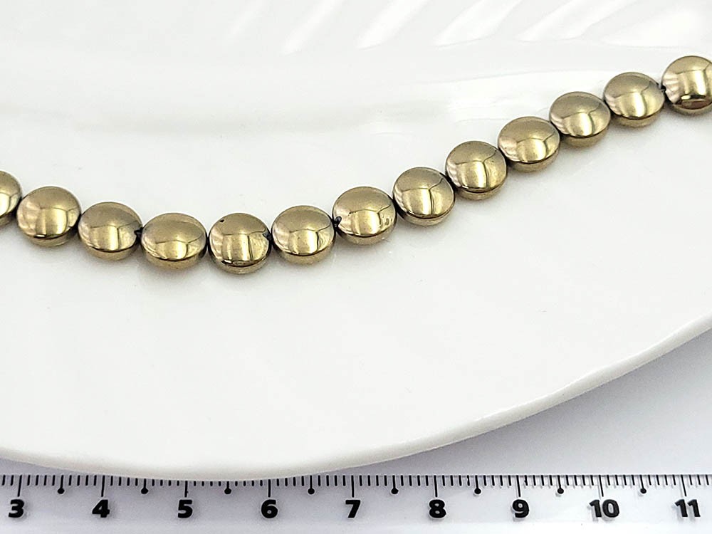 Гематит золото, таблетка круглая выпуклая 8*2 мм, 20 см/нить