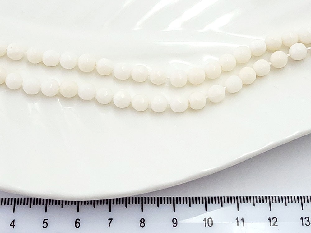 Коралл белый круглый граненый 6мм, 20см/нить