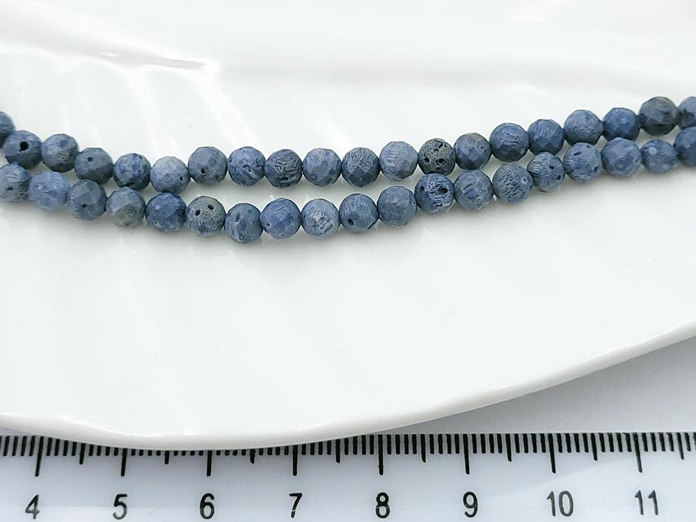 Коралл голубой круглые граненые 5 мм, 40 см/нить