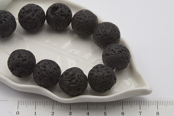 Лава черная круглая, 16мм, 10шт/нить