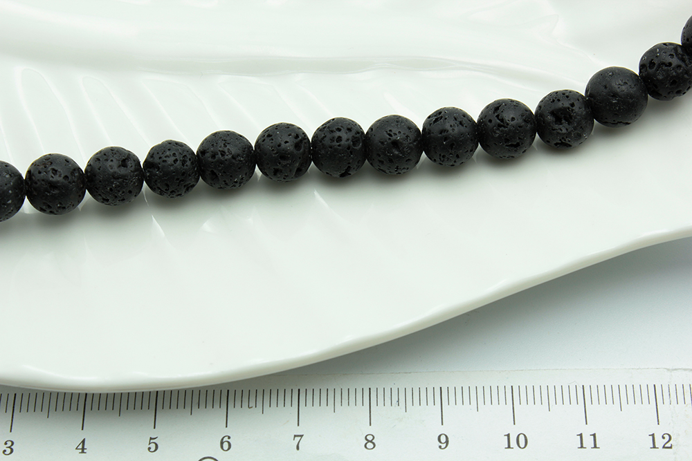 Лава черная, круглая, 8мм, 39-40см/нить