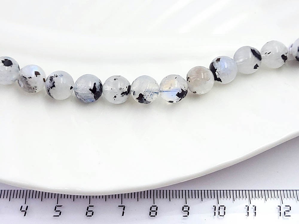 Лунный камень с шерлом, круглый 10 мм, 20 шт/нить