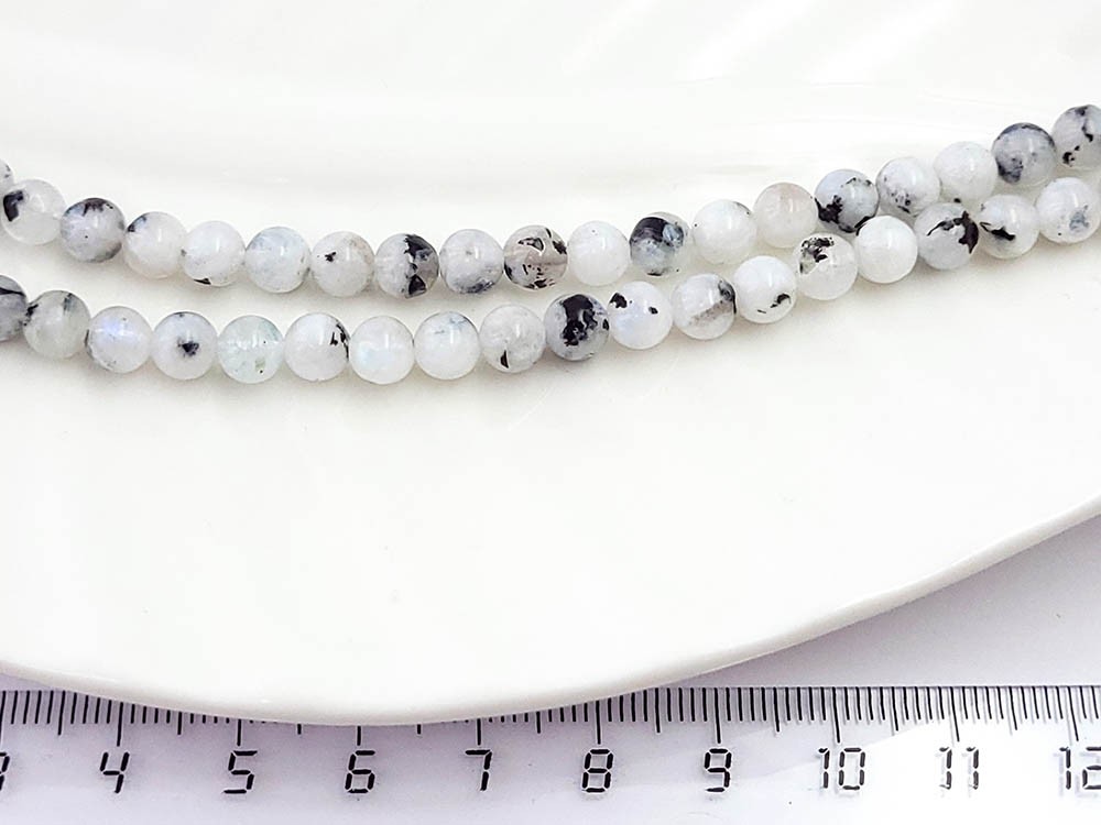 Лунный камень с шерлом, круглый 6 мм 39 см/нить