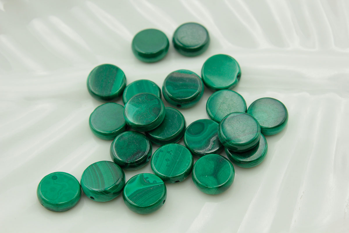 Малахит натуральный, таблетка 10*2мм, 1шт/коробка - Рукоделкино Товары для творчества Фурнитура для украшений