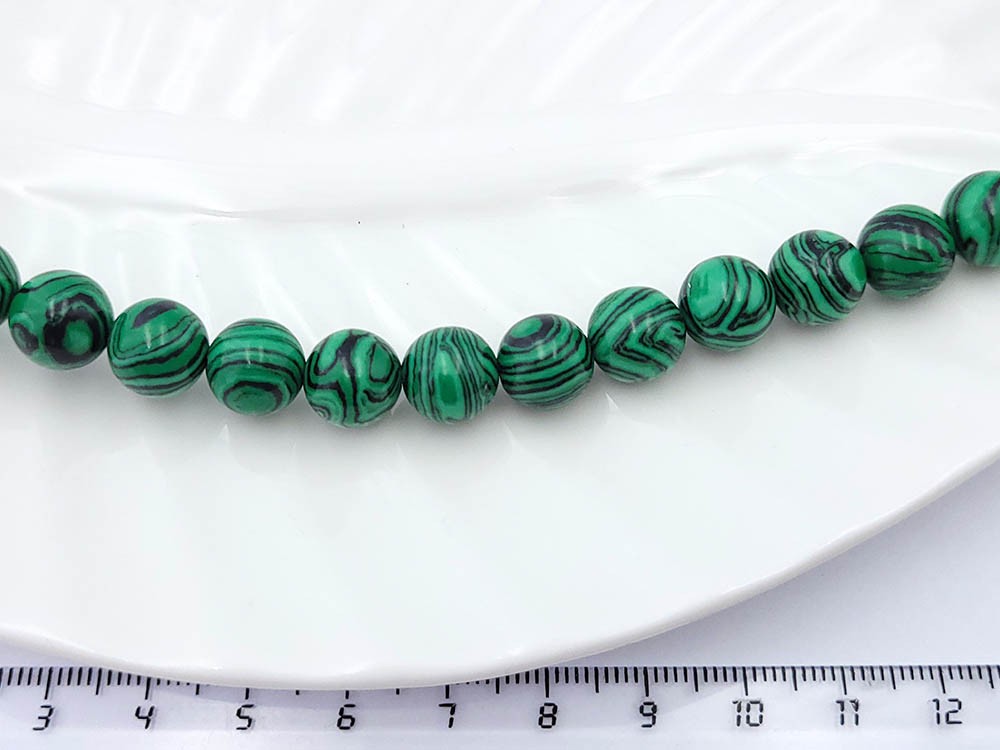 Малахит синтетический круглый 10 мм 13 шт/нить