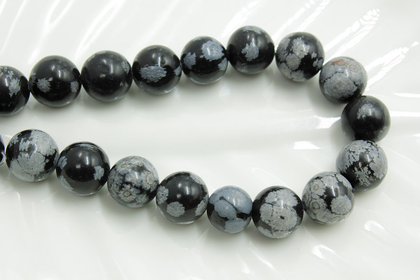 Обсидиан снежный круглый 10мм 20шт/нить