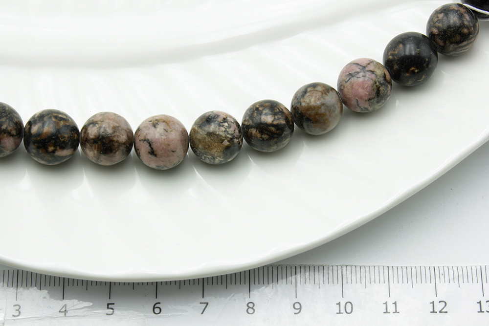 Родонит круглый 12мм 11шт/нить2 - Рукоделкино Товары для творчества Фурнитура для украшений