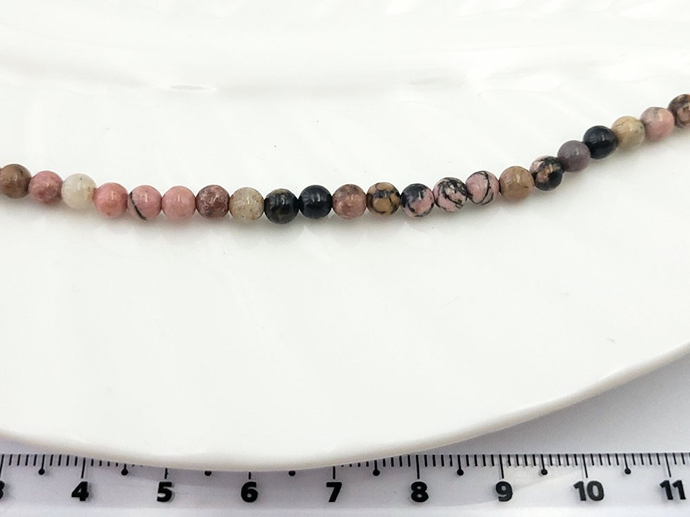 Родонит, круглый 4 мм, 19 см/нить