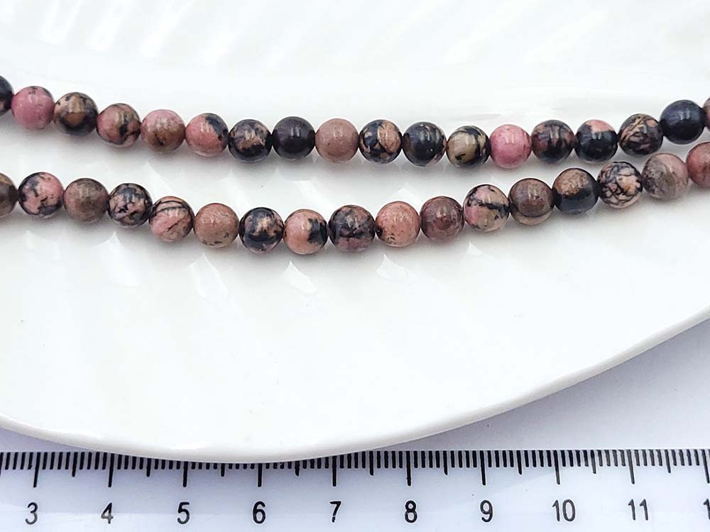 Родонит, круглый 6 мм, 38 см/нить