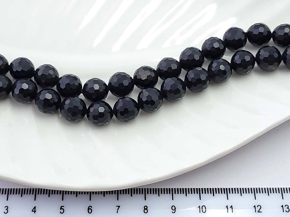 Шунгит натуральный круглая граненая 10мм, 37шт/нить