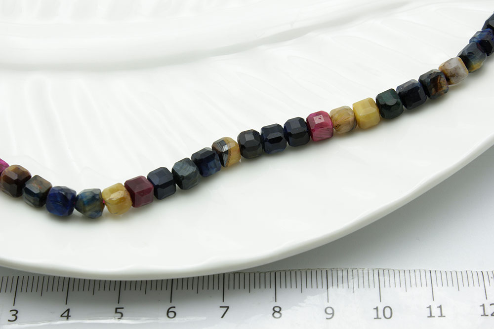 Главная / Всё для творчества и хобби / Всё для создания украшений / Бусины / Бусины из натуральных камней / Тигровый глаз / Тигровый глаз тонированный ассорти цветов кубик граненый 4*4мм 19,5см/нить