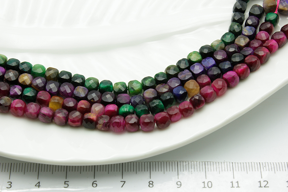 Главная / Всё для творчества и хобби / Всё для создания украшений / Бусины / Бусины из натуральных камней / Тигровый глаз / Тигровый глаз тонированный ассорти цветов кубик граненый 5*5мм 20см/нить