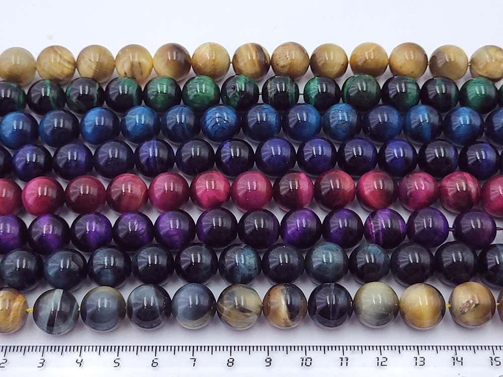 Тигровый глаз тонированный круглый (цвет в ассортименте) 12 мм 19,5 см/нить