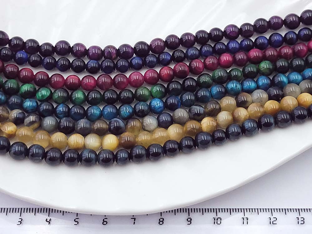 Тигровый глаз тонированный круглый (цвет в ассортименте) 6 мм 38 см/нить