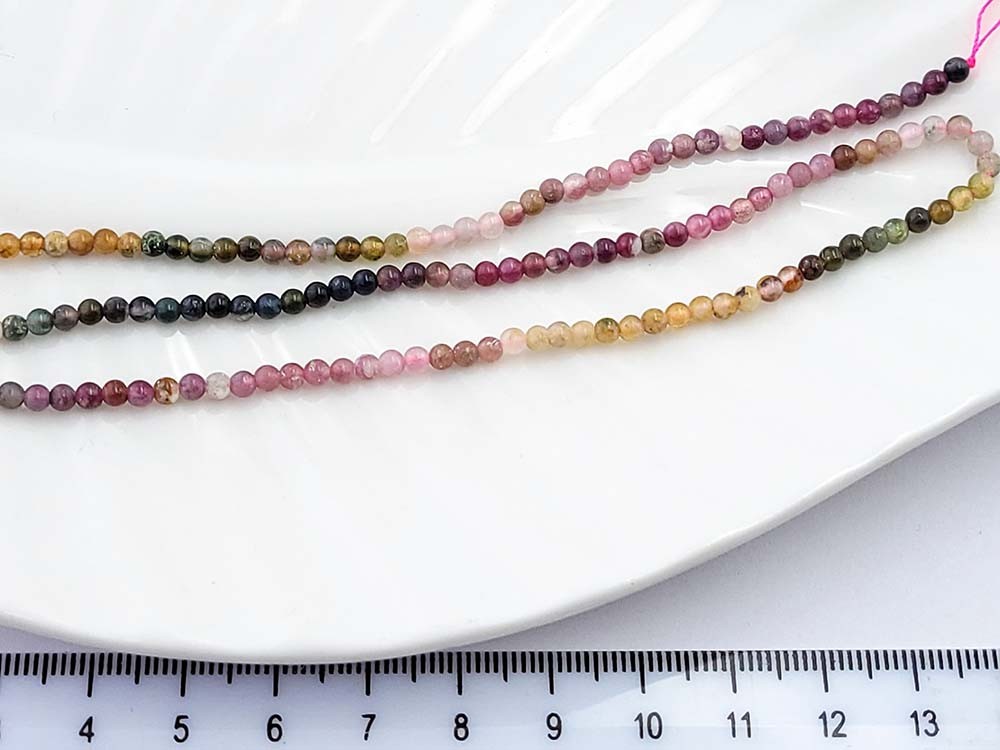 Турмалин разноцветный, круглая 3мм, 39см/нить