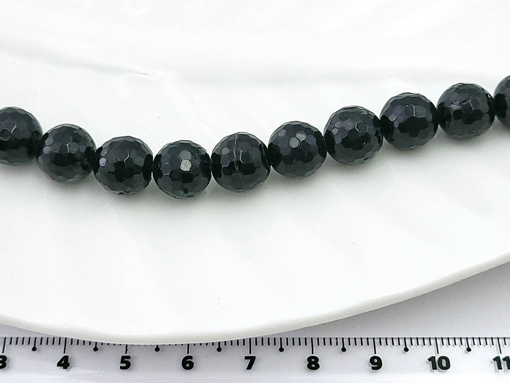 Турмалин черный, круглый граненый 10 мм, 20 шт/нить