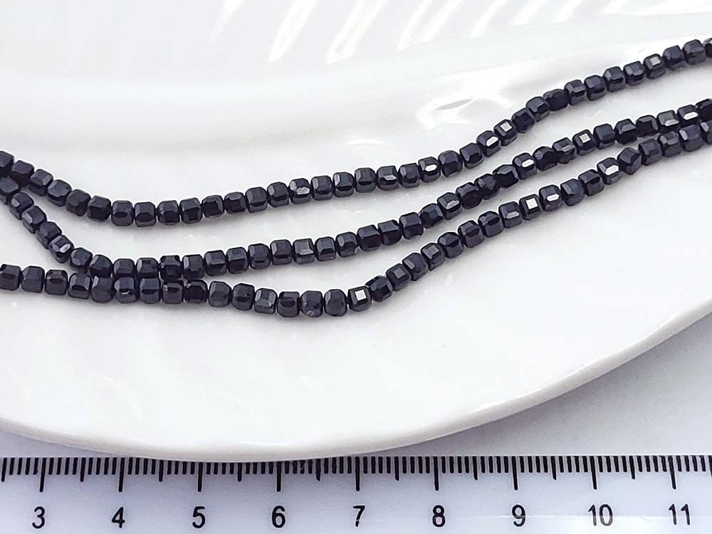 Турмалин черный кубик граненый 3мм, 39см/нить