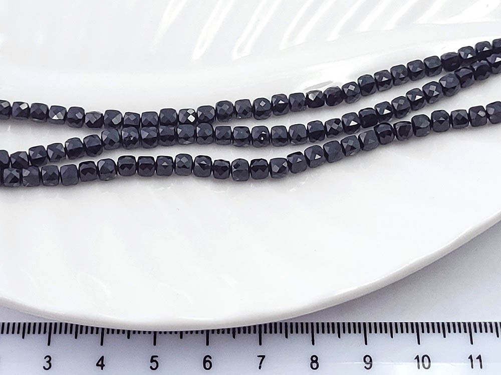 Турмалин черный, кубик граненый 4мм, 39см/нить